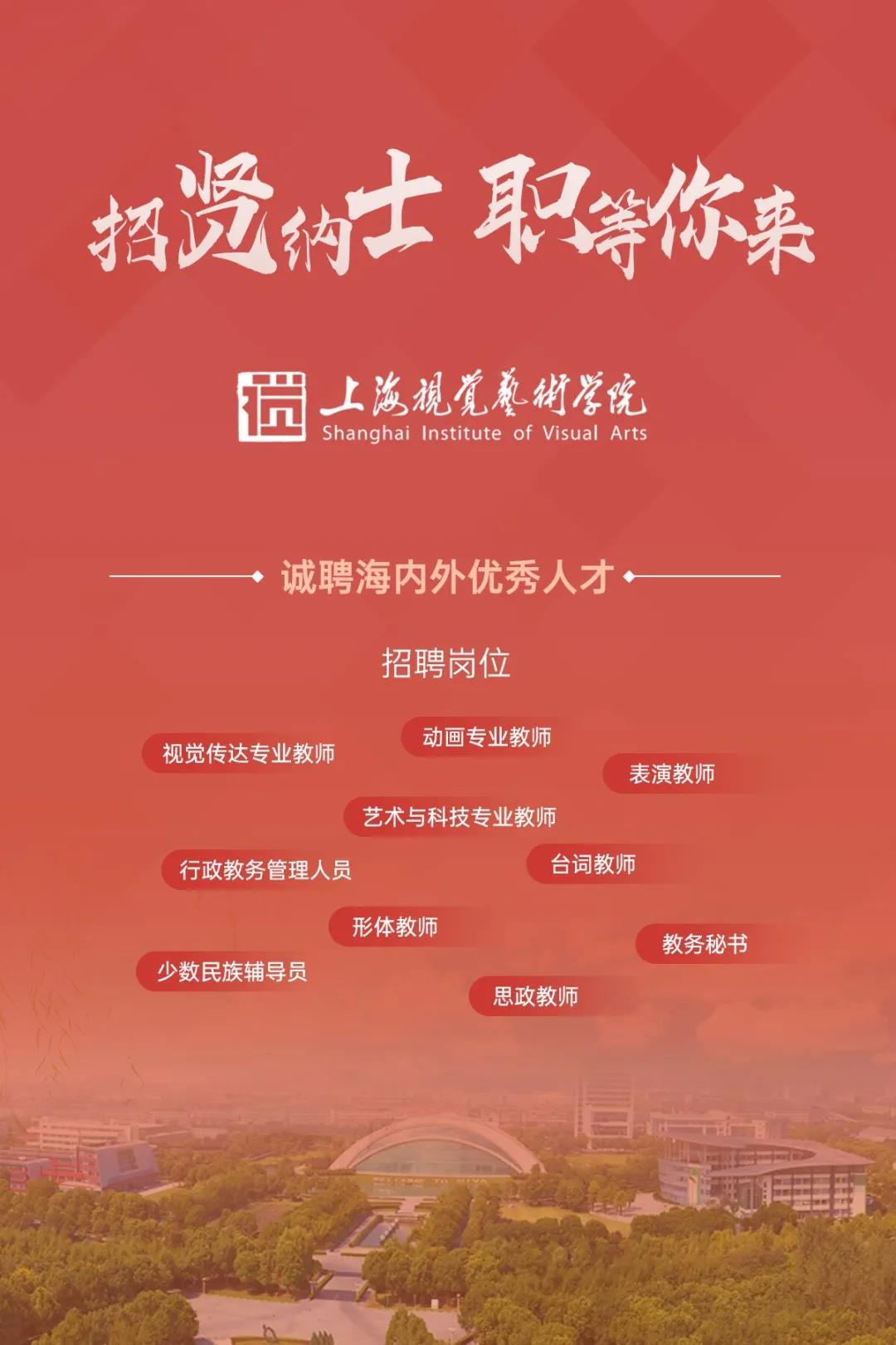 上海视觉艺术学院创办于2005年9月,是一所混合所有制的新型综合艺术类普通本科高等院校。 学校下设九个二级学院:视觉德稻设计学院、新媒体艺术学院、时尚设计学院、美术学院、表演艺术学院、文化创意产业管理学院、文物保护与修复学院、流行音乐舞蹈学院、基础教育学院,现已开设19个艺术类和管理类专业,39个专业方向。 学校始终贯彻党的教育方针,坚持社会主义办学方向和公益性办学原则,根据中共上海市委、市政府对学校“以新体制、新机制,把学校办成高起点、高水平艺术院校”的要求,立足国家社会经济和文化发展战略需求,面向上海乃至长三角地区文化创意产业服务,确立建设“国内一流、国际知名的高水平艺术大学”的奋斗目标。 遵纪守法,热爱教育事业,具有较好的品德修养,身体健康。 具有硕士研究生及以上学历。 具有招聘岗位要求的专业或技能条件。 应聘高级岗位的年龄一般在55周岁以下,应聘中级岗位的年龄一般在35周岁以下;特殊情况由学校研究确定。 招聘时间:2021年12月1日—2022年12月31日。 报名方式:应聘采用招聘系统网上报名方式,请登录上海视觉艺术学院招聘网站进行应聘(需先注册账号并完善个人信息)。 应聘人须提供完整、真实、有效的个人信息,提供虚假信息者,一经发现,立即取消应聘资格。招聘单位将根据收到的应聘材料进行筛选与资格审查,通过审查的对象进入面试环节。 个人在线提交应聘信息。 人力资源部筛选简历,符合应聘条件的送学院挑选。 学院选定后,由人力资源部组织面试。 学院确定初选人员后,由学校组织背景调查。 通过背景调查后,报送学校审议通过。 6 学校审批通过后,办理入职手续。 1.应聘方式 有意应聘者请从速登陆,注册并完善简历后进行岗位竞聘。 2.招聘流程 经初步评审,我们将通过电话或邮件向符合应聘条件的应聘者发出面试通知。一个月内没有收到面试通知者可自行放弃等待。谢绝来访。 3.联系人及联系电话 马老师021-67823147 上海视觉艺术学院 人事处 2021年12月1日 END