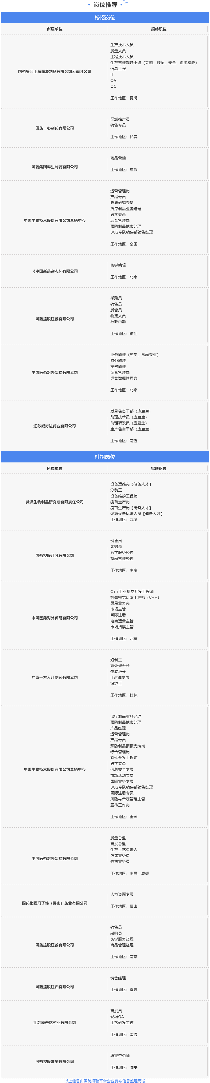 • 中国医药集团有限公司(以下简称“国药集团”)是由国务院国资委直接管理的唯一一家以医药健康产业为主业的中央医药企业,是国家创新型企业,是中央医药储备单位,是中国和亚洲综合实力和规模领先的医药企业,拥有集研发、制造、物流分销、零售连锁、医疗健康、工程技术服务、专业会展、国际经营、金融投资等为一体的大健康全产业链。旗下有1400多家子公司和国药控股(01099.HK)、国药股份(600511.SH)、国药一致(000028.SZ 200028.SZ)、天坛生物(600161.SH)、现代制药(600420.SH)、中国中药(00570.HK)6家上市公司,员工总人数15万人。