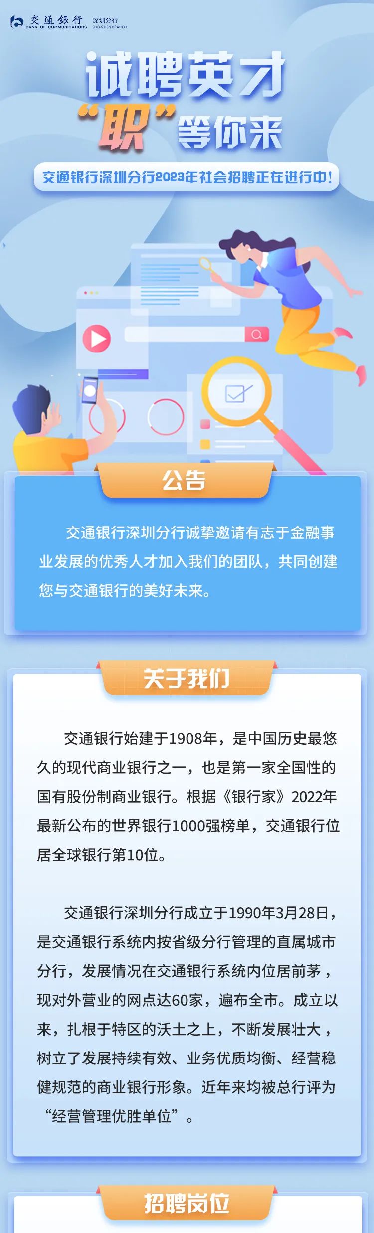 深圳招聘丨交通银行深圳分行2023年社会招聘正在进行中!期待您的加入!