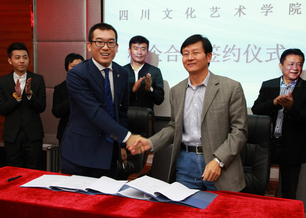 刘洋对华域五洲(北京)教育科技有限公司进行了简短的介绍,并对本次的合作项目进行了解读。他表示,华域目前以职业教育、留学教育两大板块为主要经营模式,职业教育在我国目前处于良好的发展态势,发展职业教育能解决校方招生方面所面临的指标问题,并且能够给予一些想上学但落榜的学生发展自己的机会,华域还会对学生的就业进行对口保障。刘洋说,此次与四川文化艺术学院的合作项目主要是以“空乘”专业为主,华域对该专业的人才培养模式以及教育资源都有着良好的基础。最后,刘洋预祝本次签约仪式圆满成功。