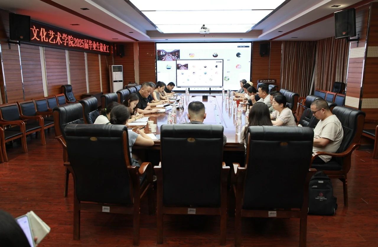 为深入推进2025届毕业生“就业百日攻坚行动”,切实提升就业质量。7月4日下午,四川文化艺术学院在绵阳校区行政楼一楼会议室召开2025届毕业生就业工作第七次推进会。副校长杨文勇出席会议,副校长张大汉主持会议,本次会议采用线上线下相结合的方式进行。