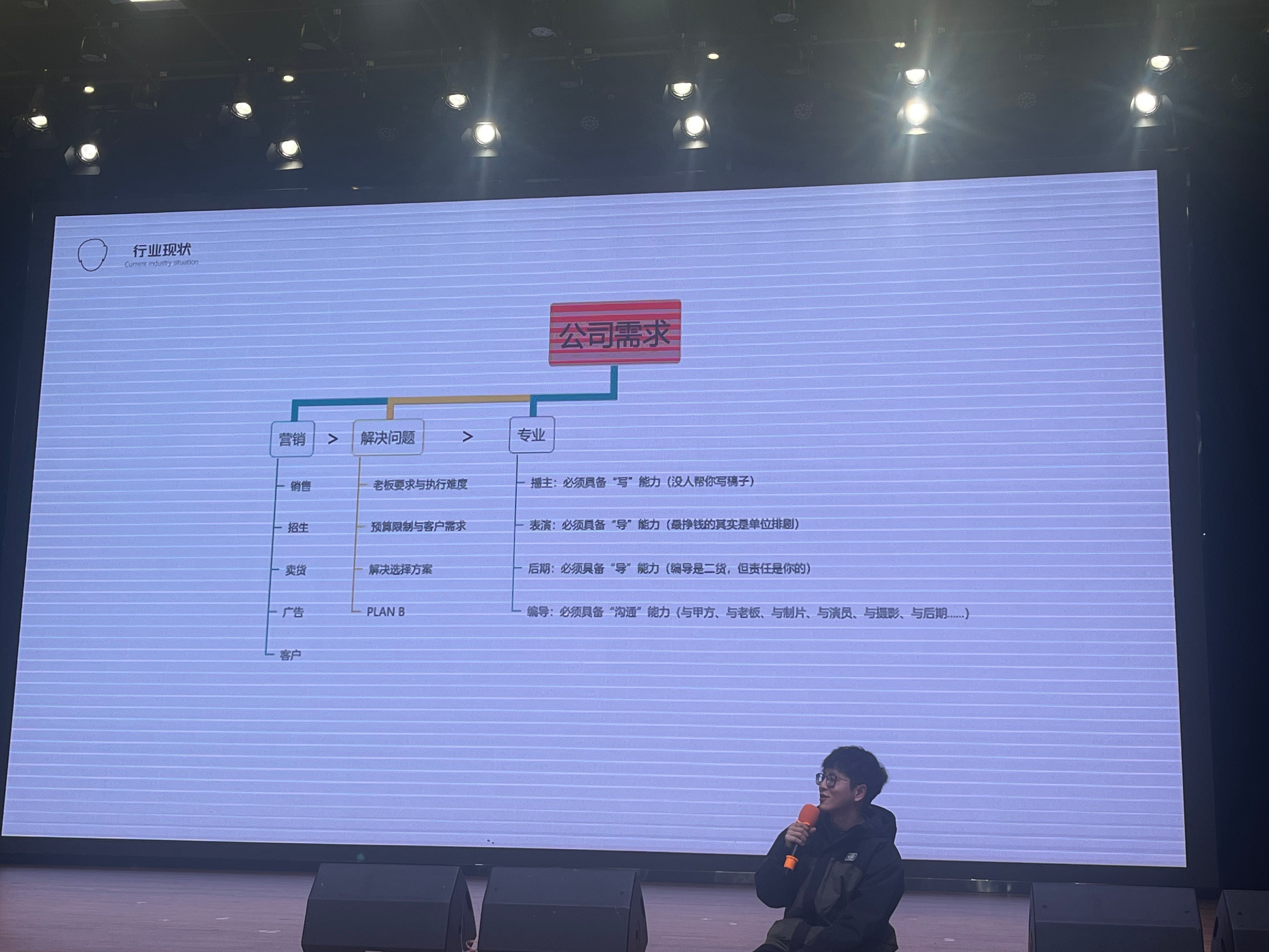 在讲座上,佟立峰以《那些你不知道的传媒行业“潜规则”》为主题,从2022年艺术类院校就业数据为切入点,揭示传媒领域结构性矛盾:播音主持专业仅15%毕业生进入主流媒体,超60%流向婚庆主持及电商直播;表演专业超七成选择自媒体或自由职业。强调“圈层突破”与“经验积累”对职业发展的重要性。佟立峰结合操盘商业广告案例,指出传媒人才须具备策划、沟通、执行的复合能力矩阵。通过分析简历筛选标准,建议学生聚焦作品数据、项目职责、投资回报三大要素,摒弃“学生会头衔”等无效信息。同时提出阶梯式发展策略:优先选择能参与核心项目的中小企业,通过实战积累社会资源与可量化成果。针对职场新人的常见误区,佟立峰提出三重防护机制:一是识别不良企业特征,警惕要求垫资、无薪试用或设置天价违约金的MCN机构;二是建立结果导向思维,避免陷入自我感动式无效努力;三是实施动态职业规划,将首份工作作为跳板,结合兴趣能力选择赛道。讲座最后,佟立峰鼓励学生正视迷茫期,通过试错明确方向。