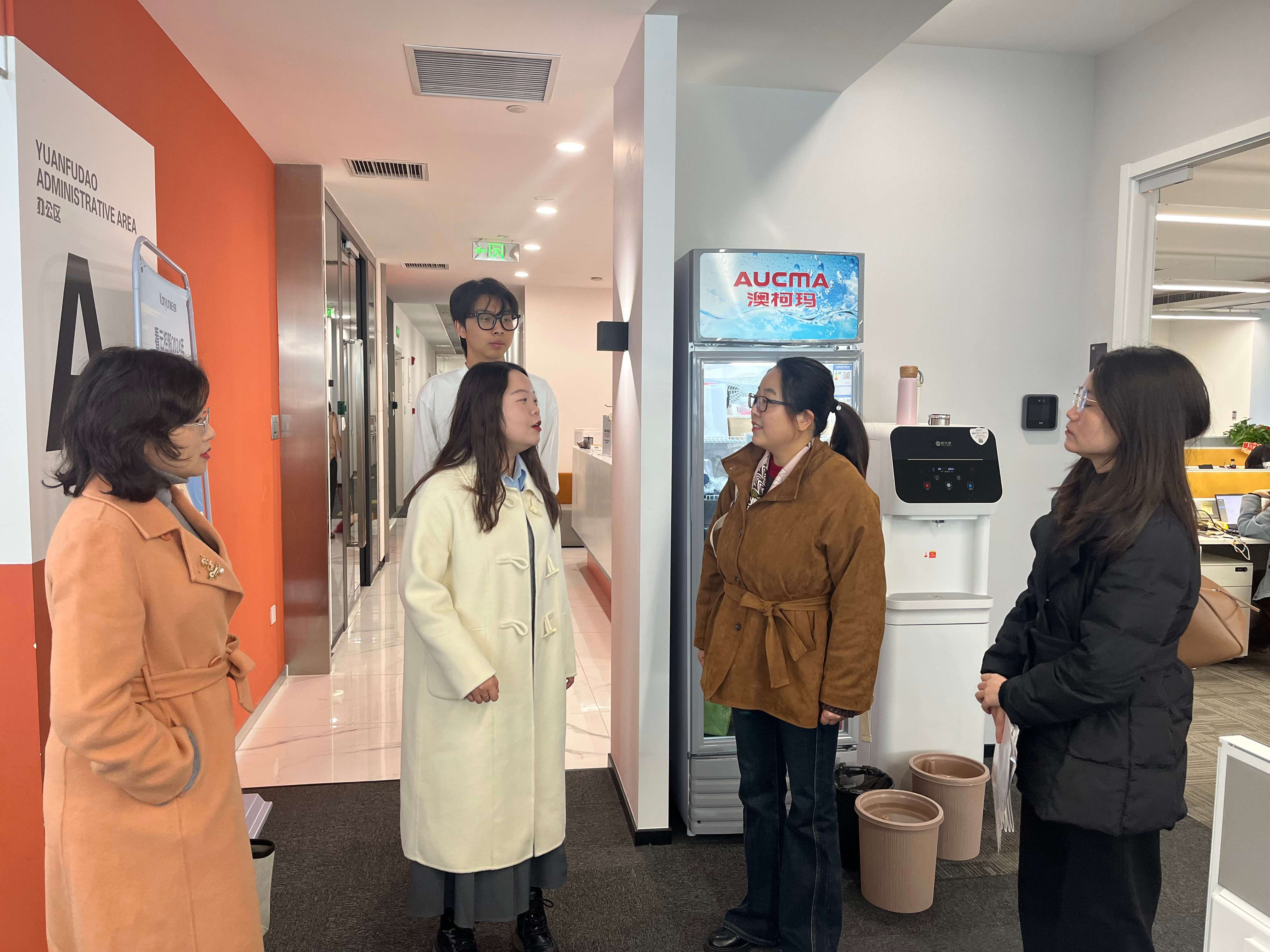 在北京猿力科技有限公司(猿辅导成都基地),企业校园招聘负责人唐宗婷陪同教师们参观企业办公场所,文化长廊,详细了解猿辅导成都基地的企业历史、市场产品、客户体量、人才需求情况。
