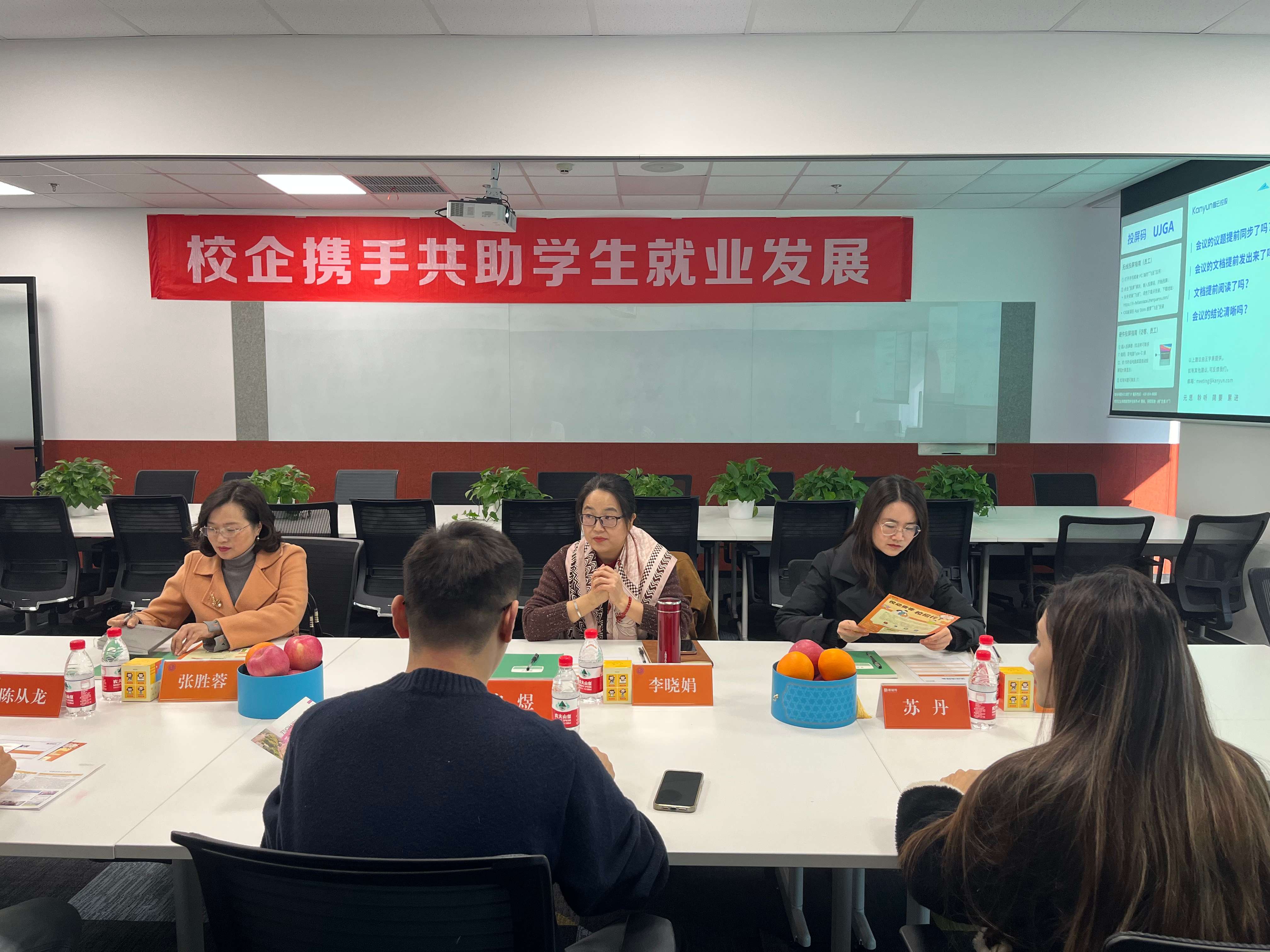 招生就业部部长李晓娟表示,学校始终坚持立德树人根本任务,坚持就业育人目标,感谢用人单位对人才培养质量的高度认可。随后介绍了学校发展历程、师资队伍和学科优势,并表示希望通过此次访企拓岗,进一步加强学校与企业的联系,促进人才培养实训基地建设,希望能与猿辅导在实习实训等方面共同推进人才培养,为毕业生提供更多实习和就业岗位。随后,双方就互联网+教育、人才培养、学生就业等方面进行了深入交流。