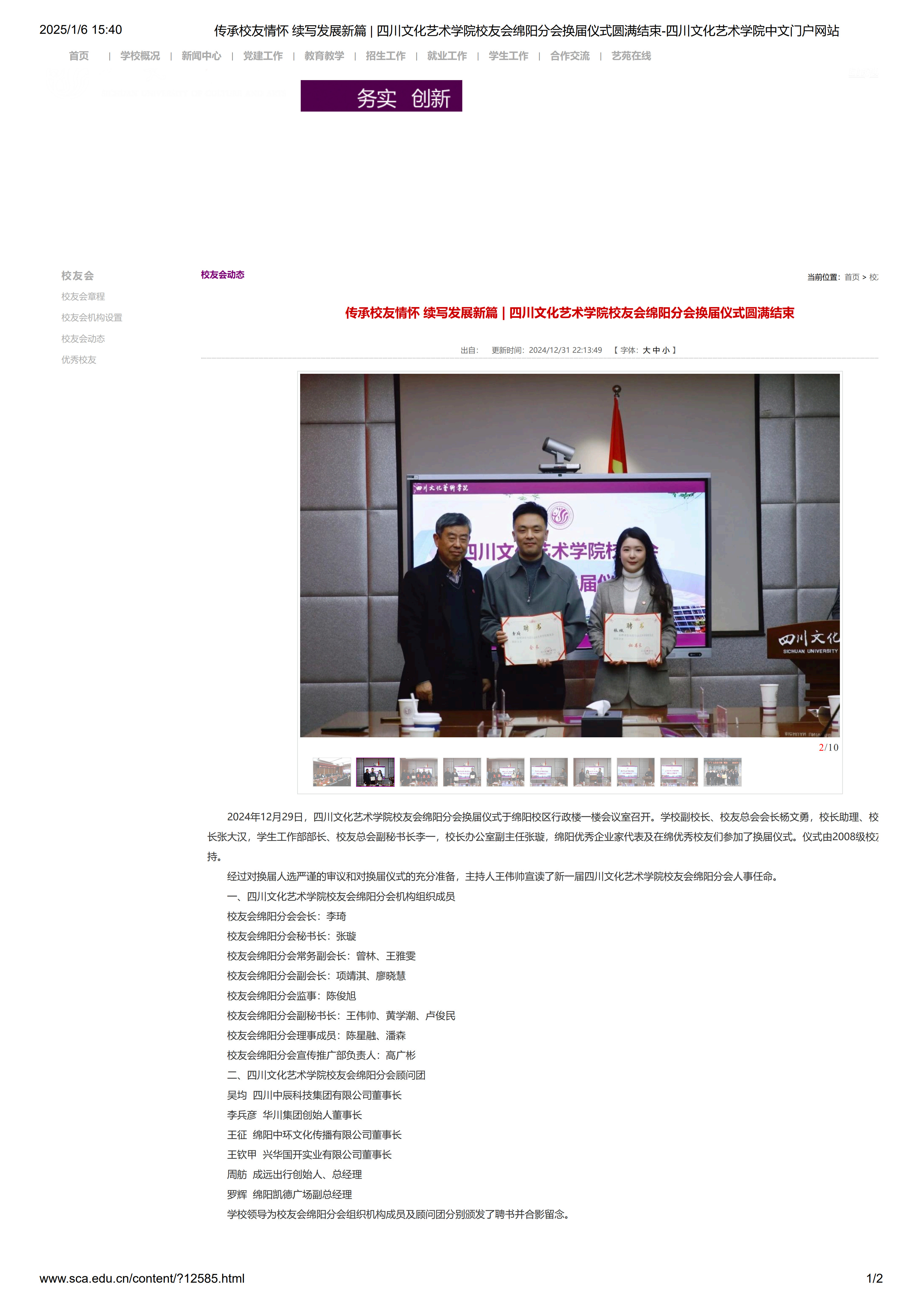 转载|四川文化艺术学院校友会绵阳分会换届仪式圆满结束