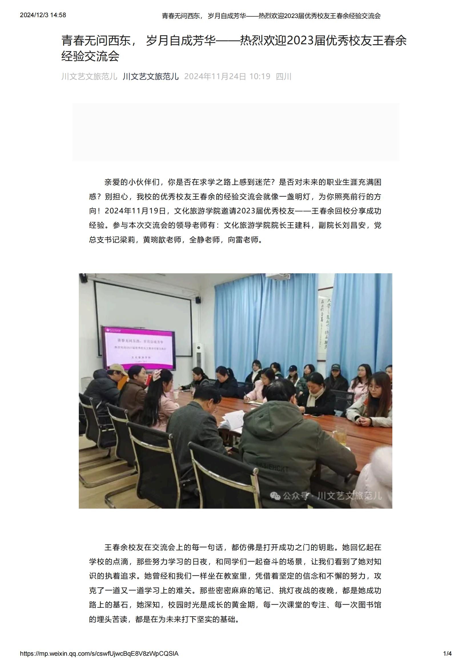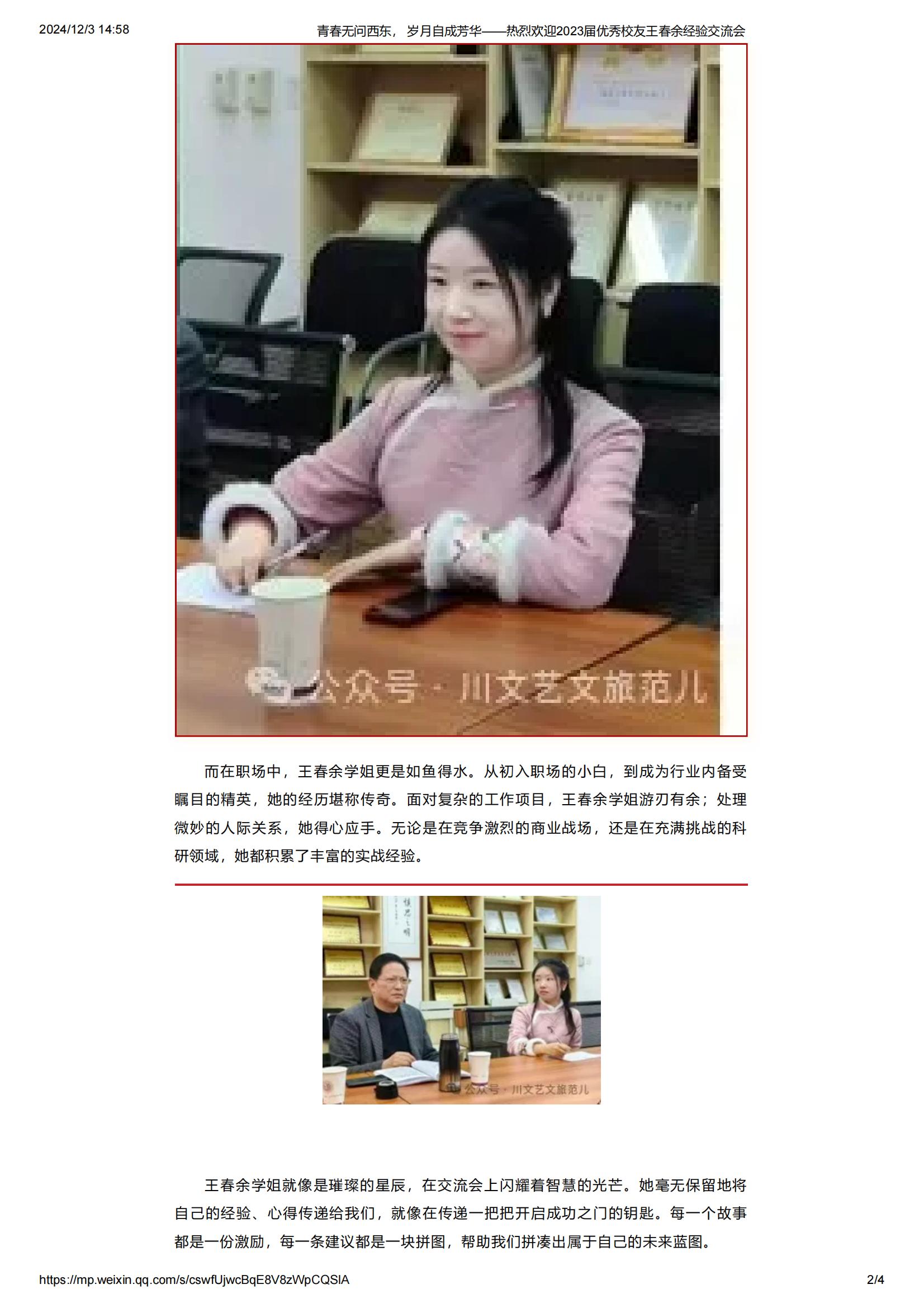 转载| 青春无问西东,岁月自成芳华——优秀校友王春余经验交流会