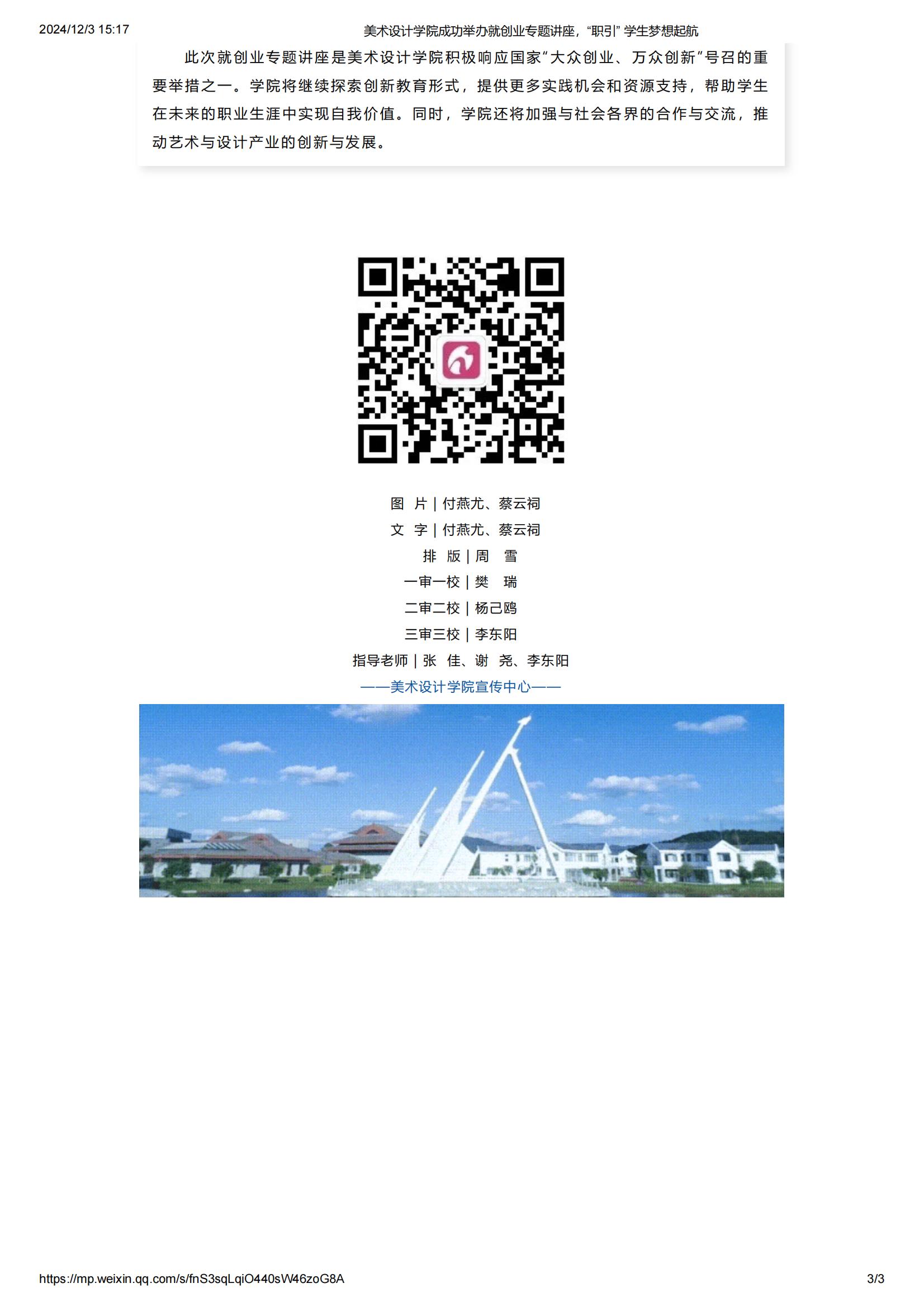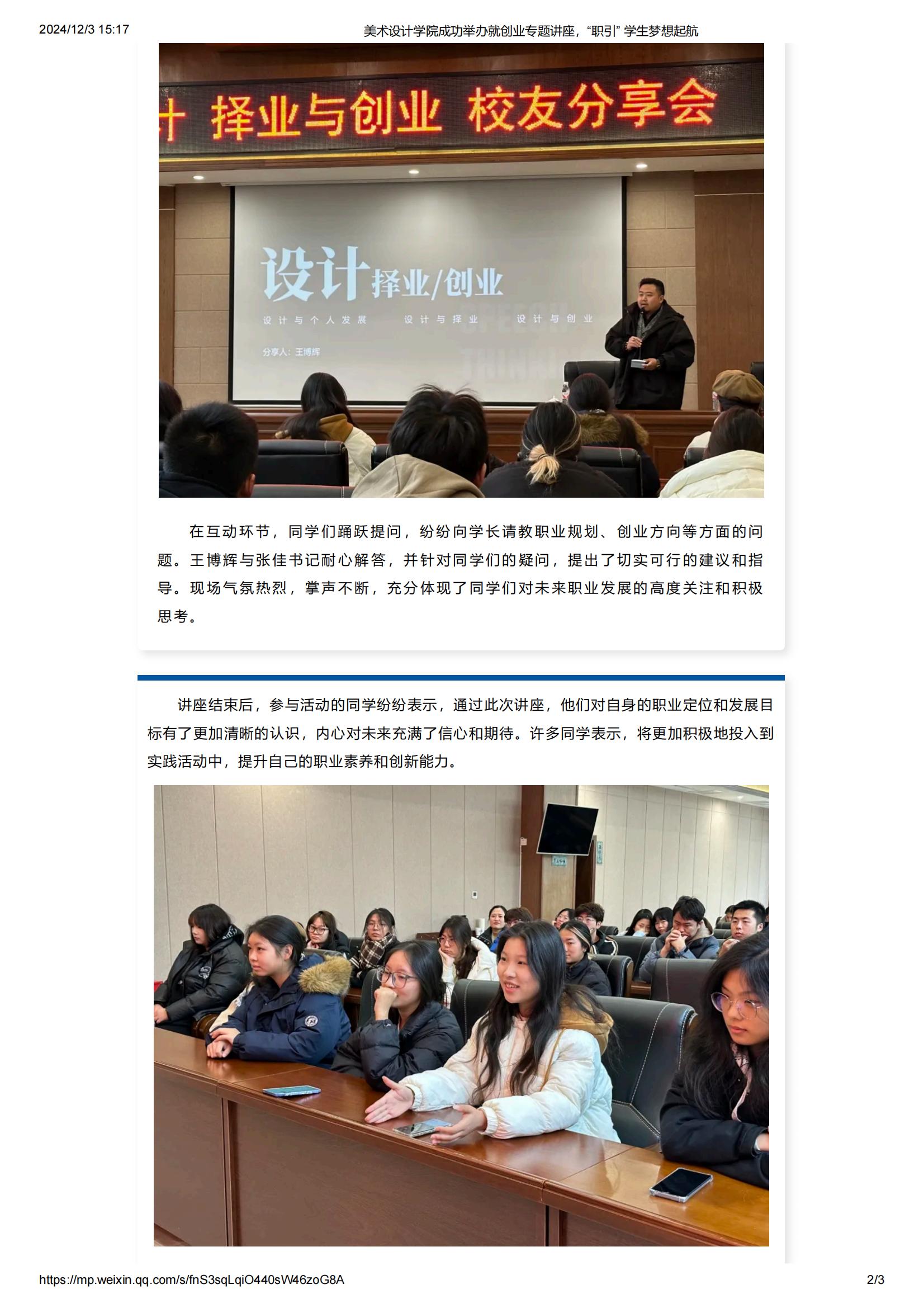 转载| 美术设计学院成功举办就创业专题讲座