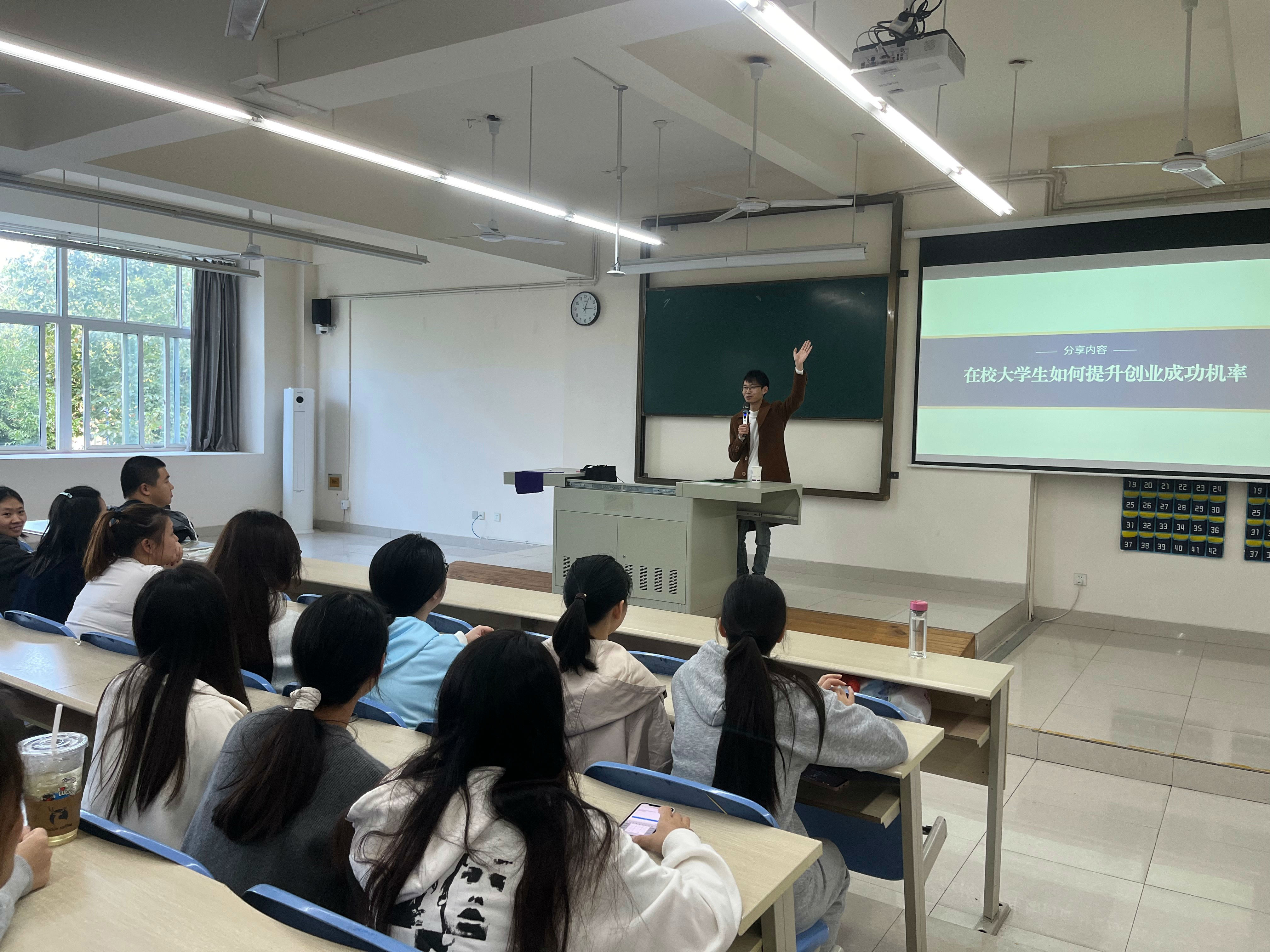 10月25日下午,在绵阳校区E栋301室举办了2025届毕业生就业创业导师系列讲座,主题是“在校大学生如何提升创业成功率”,学校邀请到四川省青联委员、绵阳市大学生创业企业发展联合会秘书长陈俊旭来校开展就业创业指导,经济管理学院、文化旅游学院及音乐舞蹈学院近100名学生参与讲座。