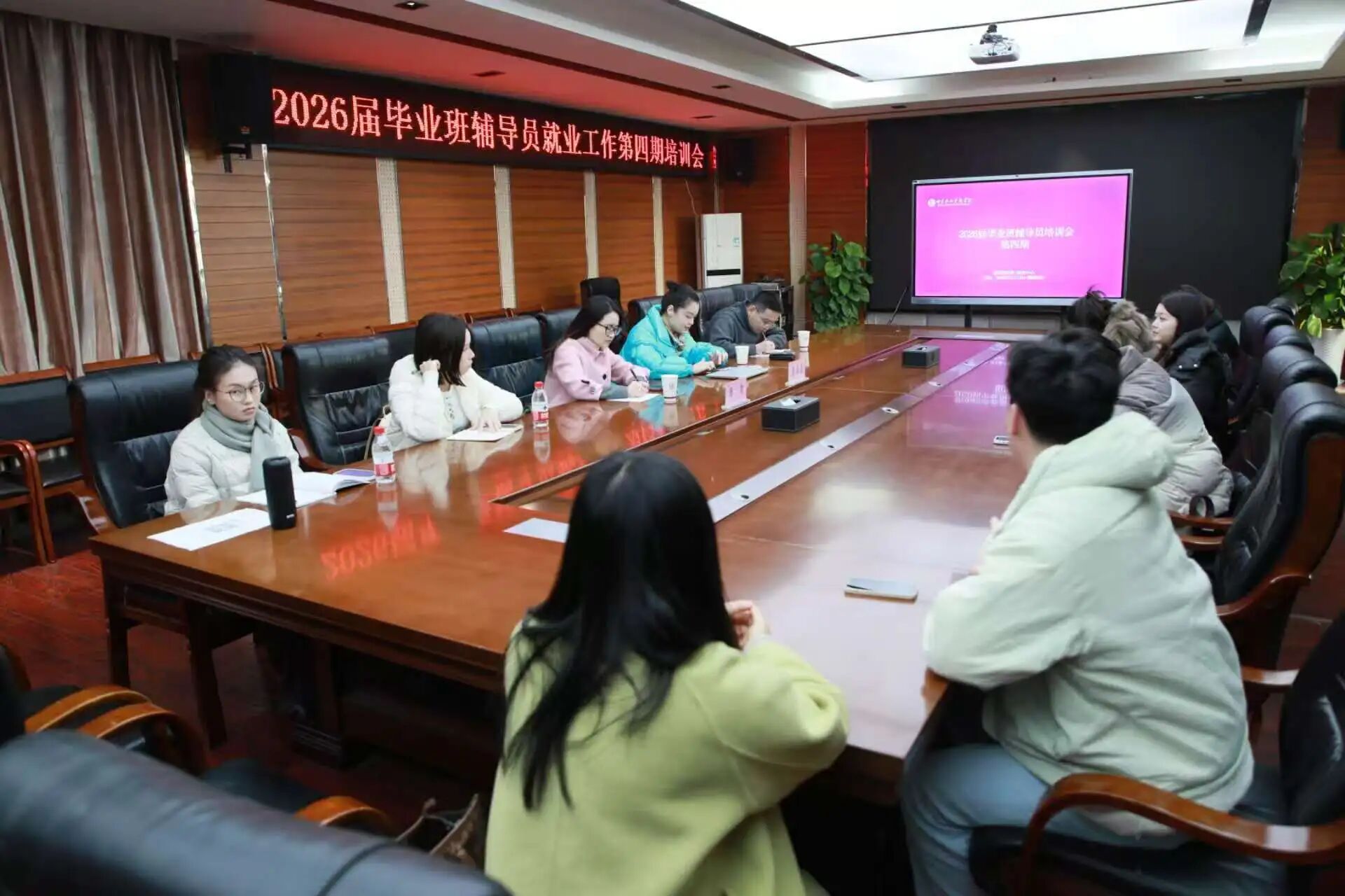 为进一步提升2026届毕业班辅导员就业指导工作能力,精准推进毕业生就业创业工作,12月16日下午,四川文化艺术学院招生就业部就业中心在绵阳校区行政楼一楼会议室举办2026届毕业班辅导员就业工作第四期培训会。招生就业部就业中心全体工作人员、2026届毕业班辅导员及就业联络员共同参会。